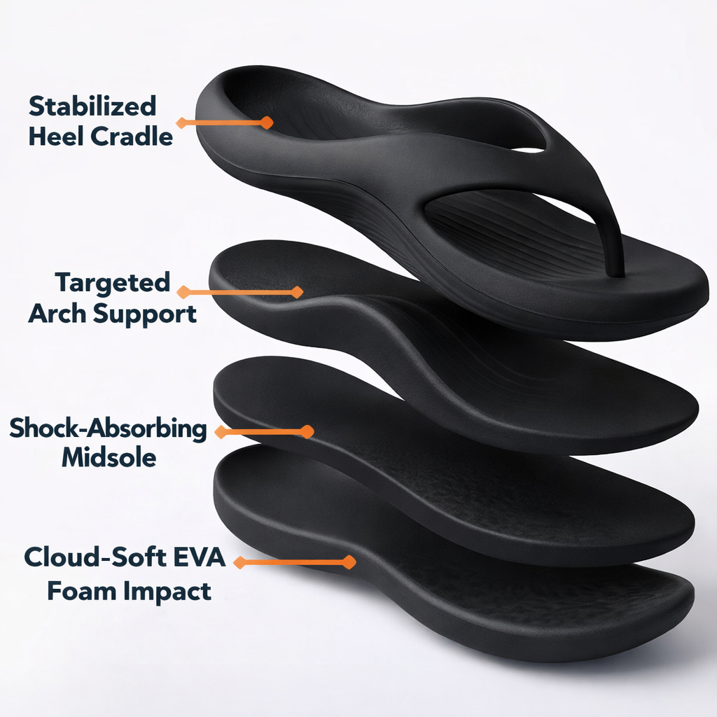 Designed to provide everyday comfort and support for people who need more structure than flat flip flops.