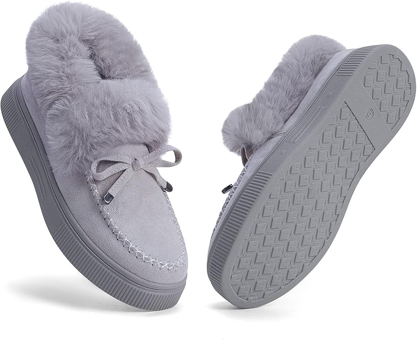 The faux fur lining provides a soft, cozy feel, keeping your feet warm in cold weather.